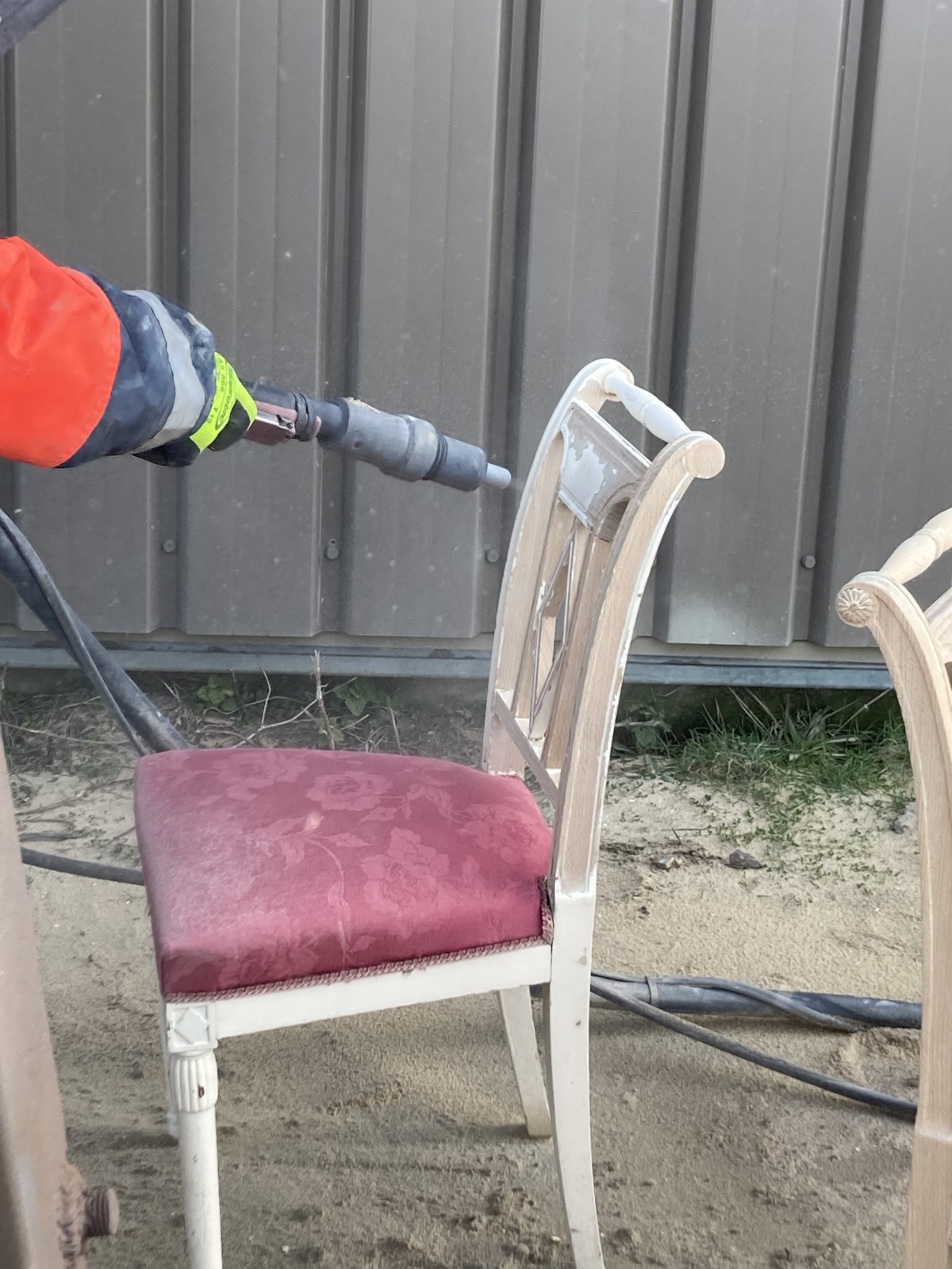 Sablage par aérogommage de poutres apparentes, d'une cheminée et de meubles secteur Les Loges 76