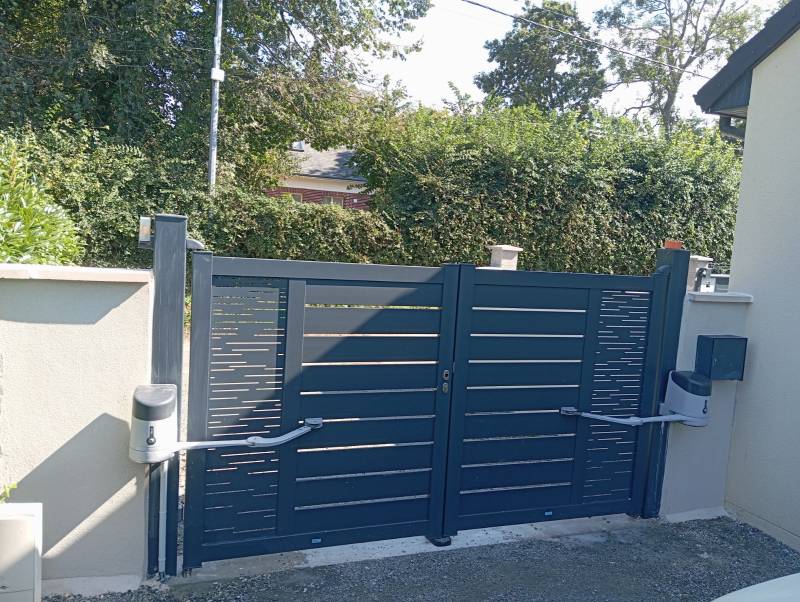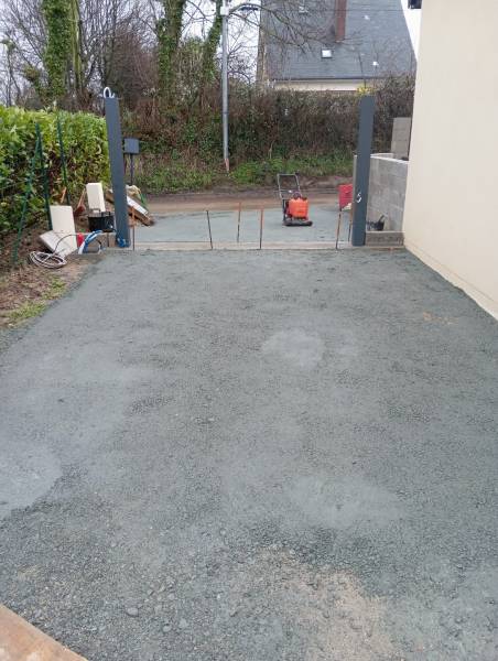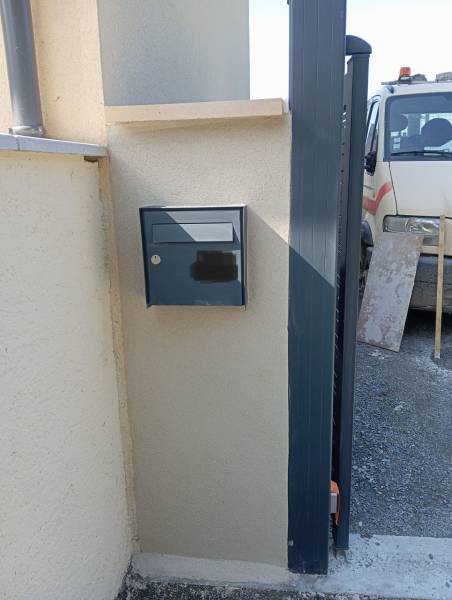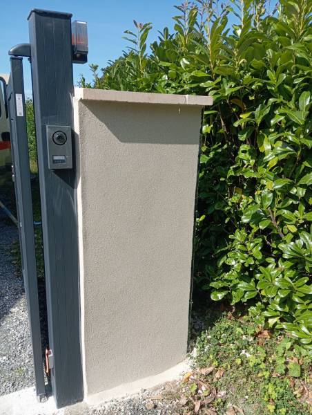 Notre entreprise est intervenue pour la pose d'un portail aluminium couleur ral 7016. Terrassement et coulage de la longrine, pose et scellement des poteaux puis maçonnage de murs de part et d'autre de ce dernier. Et pour finir l'application d'un enduit.