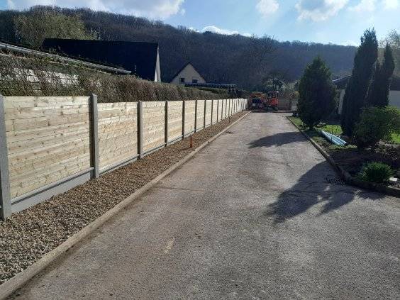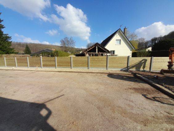 Suite à l'arrachage d'une haie de thuyas, notre client cherchait à clôturer en occultant le vis à vis. Après divers propositions le choix s'est porté sur cette clôture bois poteaux béton à feuillure.